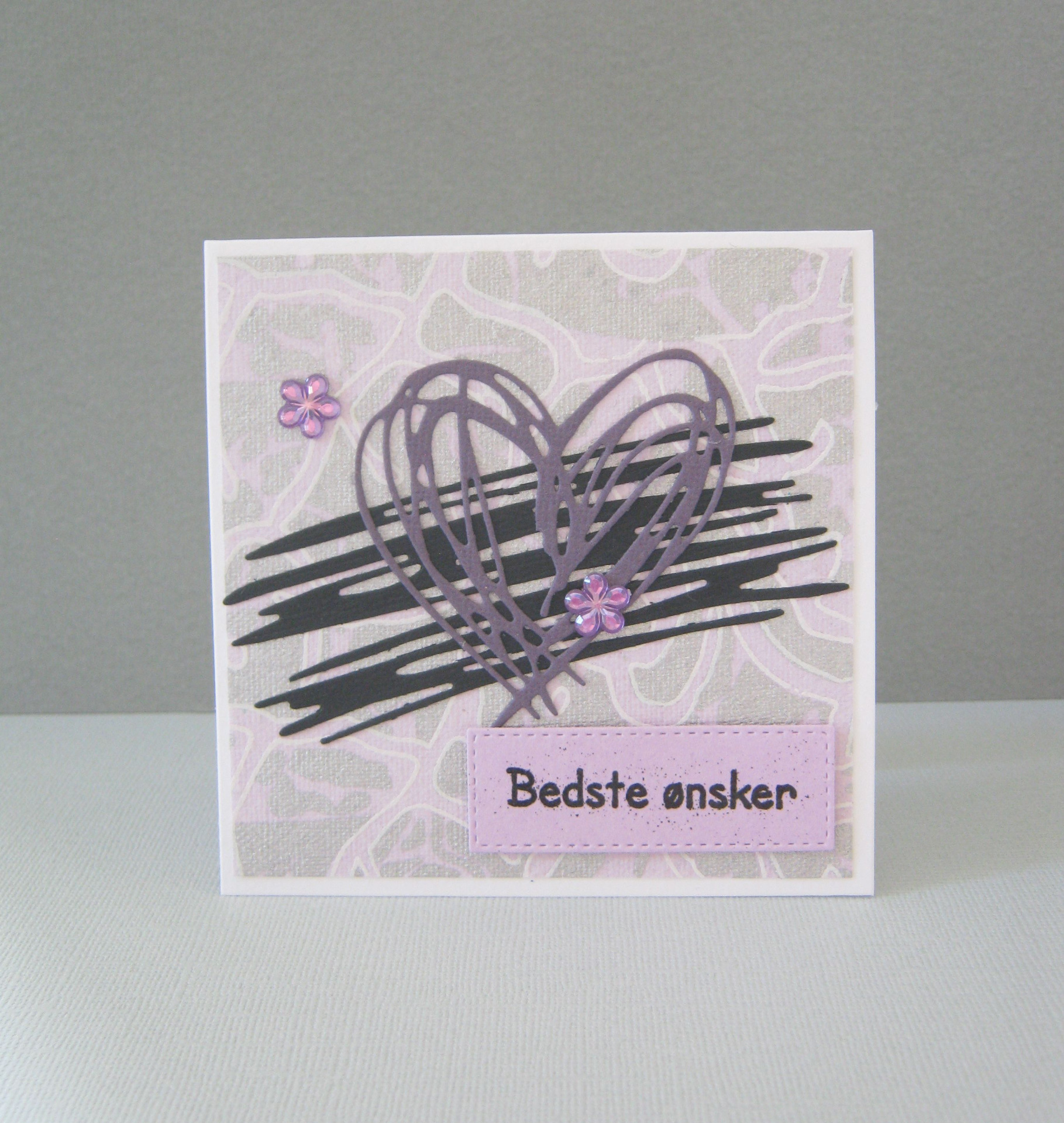 Motiverne er stanset ud på min Ebosser-maskine og tekst er stemplet med embossing effekt og sat på foam-puder, der giver en 3D effekt.